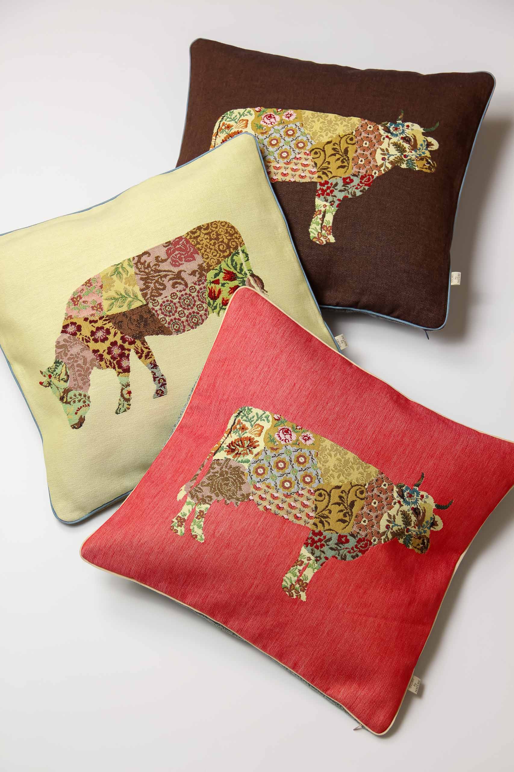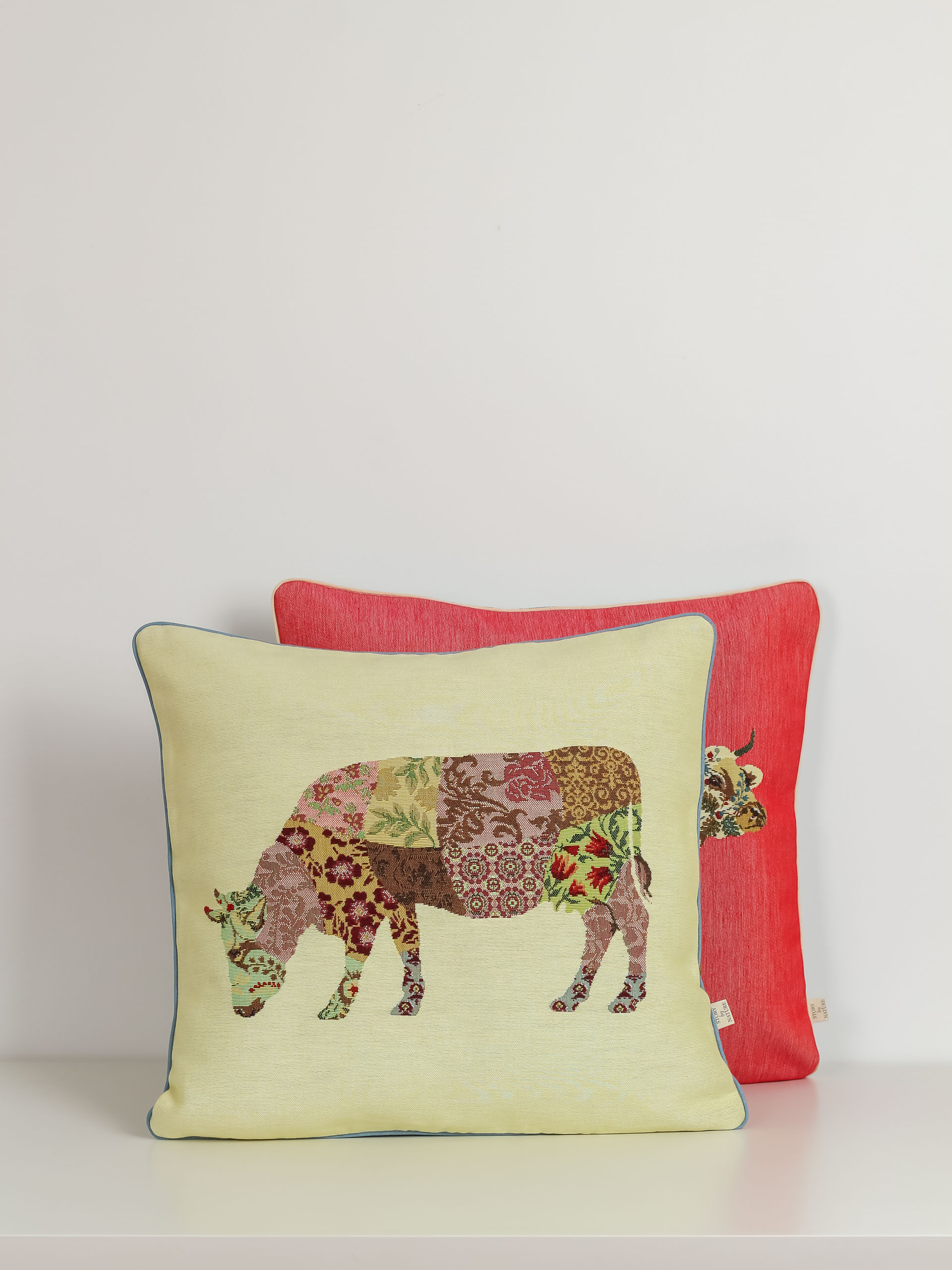 Žaismingas ir įkvepiantis akcentas jūsų namams! Ši dekoratyvinė pagalvėlė iš belgiško gobeleno išsiskiria švelniu fonu, kuriame atsiskleidžia stilingas karvės siluetas iš gėlėtų gobeleno fragmentų. Tarsi iš lopinėlių sudėliotas raštas sukuria unikalų meninį vaizdą, kuris traukia akį ir pripildo erdvę šilumos.