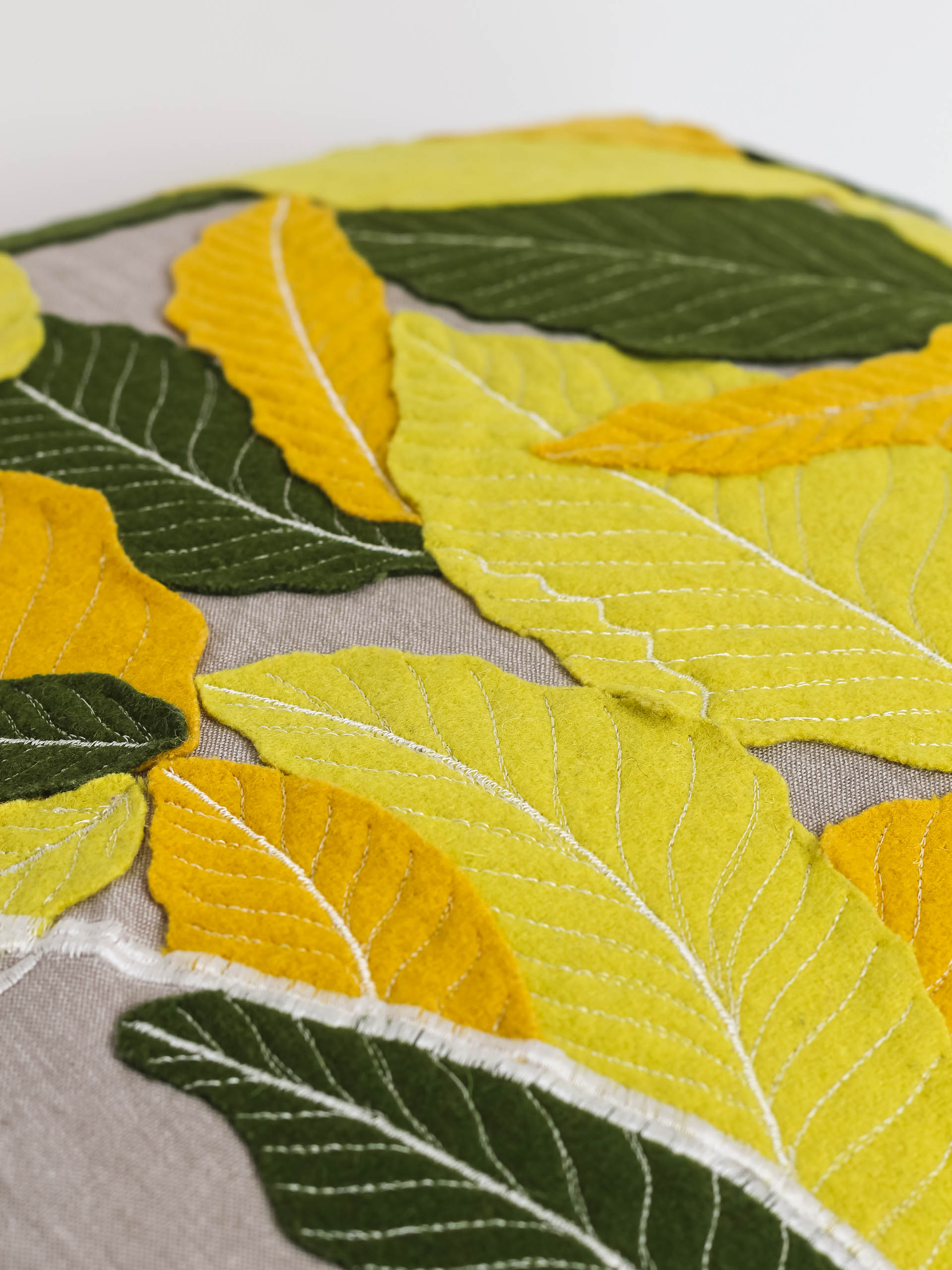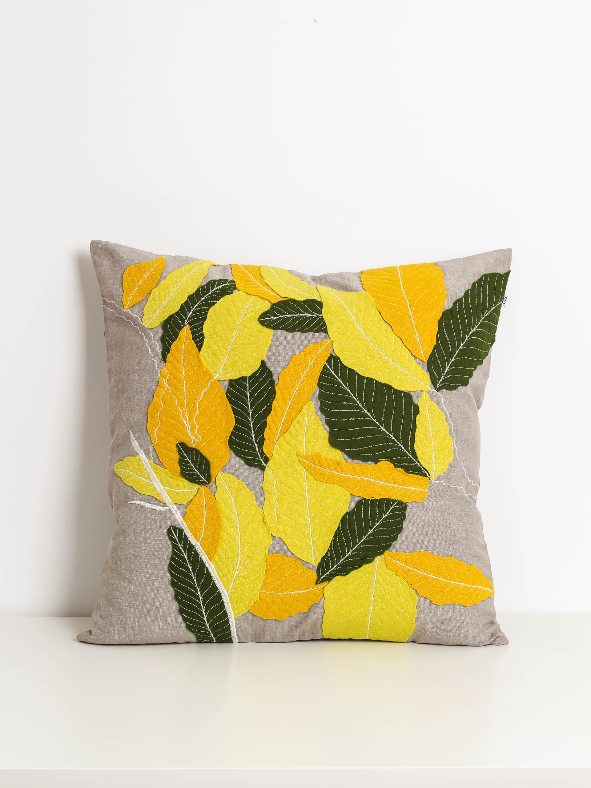 Šis dekoratyvinis pagalvėlės užvalkalas su veltinio lapais – tarsi mažas gamtos fragmentas tavo namuose. Rankų darbo faktūros, švelnūs žalios, gelsvos ir smėlio spalvų deriniai kuria šilumos ir jaukumo įspūdį. Kiekvienas lapelis atrodo lyg nugulęs ant audinio po vėjo gūsio – tikras rudens prisilietimas.