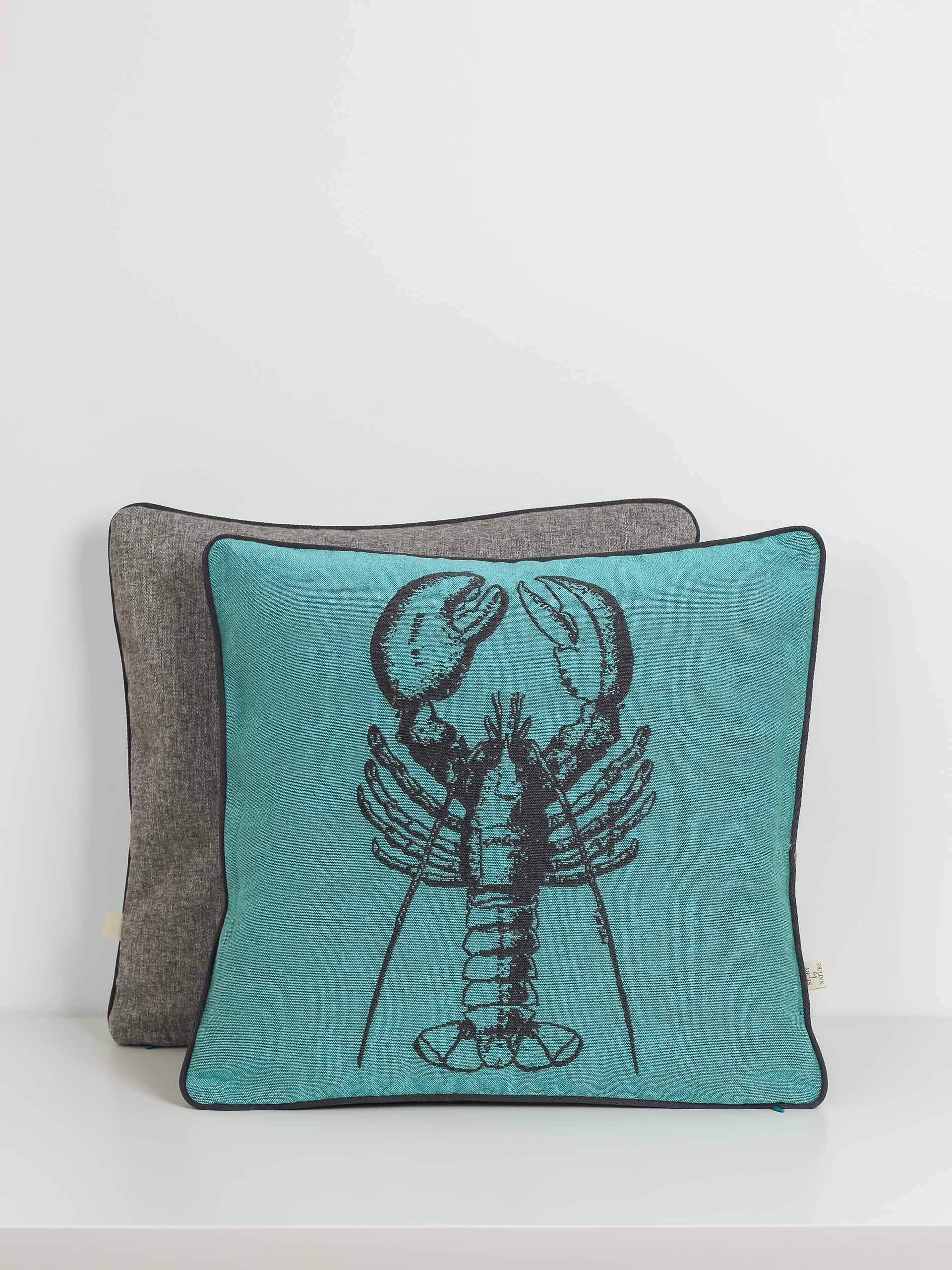 Šis pagalvėlės užvalkalas atrodo tarsi gabalėlis pajūrio — gaivus, lengvas ir alsuojantis jūros brizo spalva. Turkio fonas primena švarią vandenyno bangą karštą vasaros dieną, o juodu kontūru nupieštas grafiškas omaras...