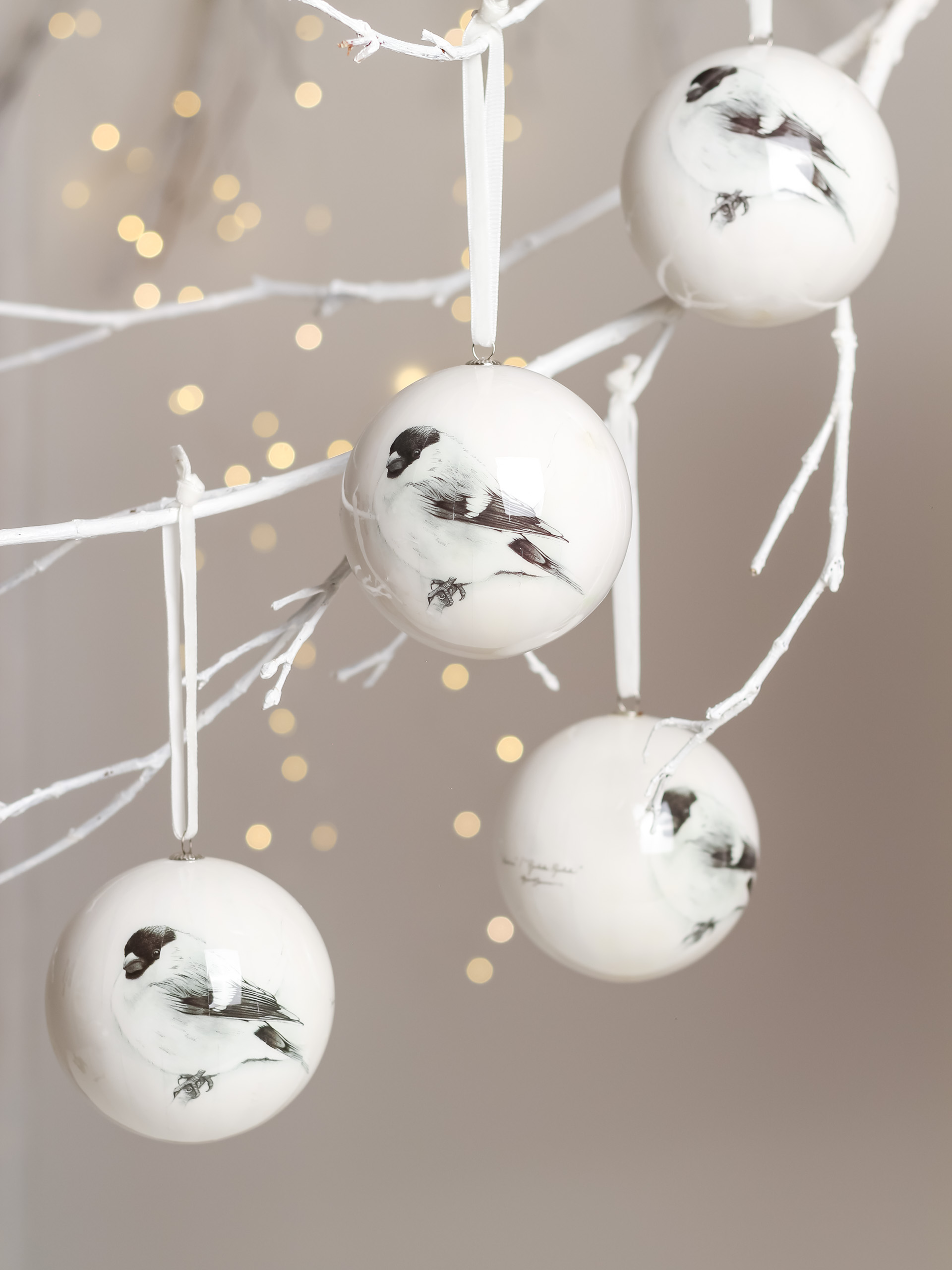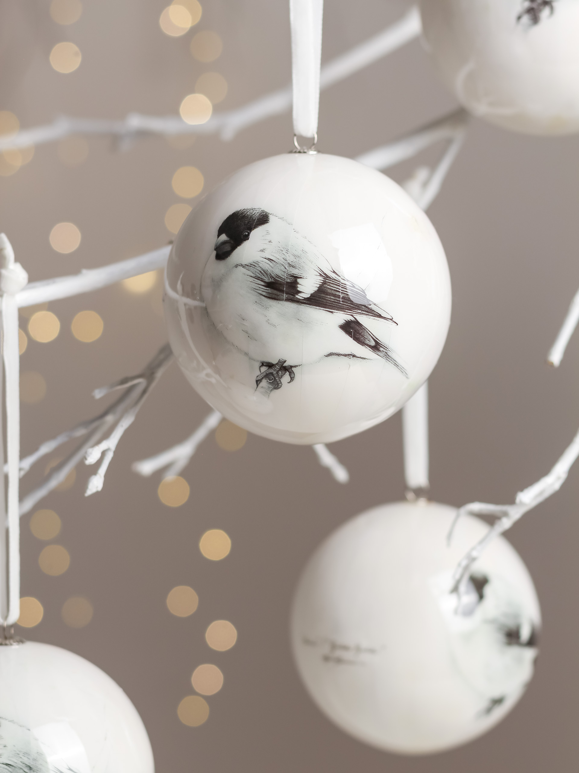 Švelnus, minimalistinis ir jaukus – šis stiklinis burbulas su sniegenos iliustracija įneš į šventes ramybės ir gamtos elegancijos. Subtilus piešinys primena žiemos tylą, kai paukščiai tampa tikru stebuklu ant balto sniego. Tai puikus pasirinkimas tiems, kurie renkasi natūralų, ramių tonų dekorą ir nori, kad jų eglutė atrodytų švelniai, bet išskirtinai.