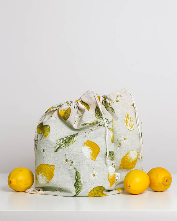 Įneškite šviesos ir vasariško džiaugsmo į savo kasdienybę su šiuo daugkariniu maišeliu, puošta citrinų ir žalių lapelių motyvu.